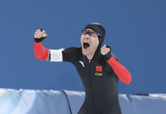 当地时间2月19日,米兰-科尔蒂纳冬奥会速度滑冰男子1500米决赛在意大利米兰举行,中国选手宁忠岩夺得冠军。