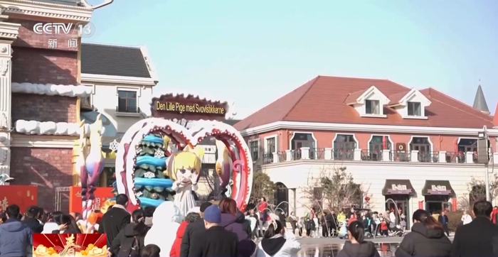 春节期间,在江苏射阳安徒生童话乐园,“福马迎春”主题展与梦幻城堡相映成趣,将传统年味与童话美学深度融合。游客轻敲金锣,祈愿新春顺遂。国风巡游队伍精彩亮相,鼓乐齐鸣、扬福送喜。
