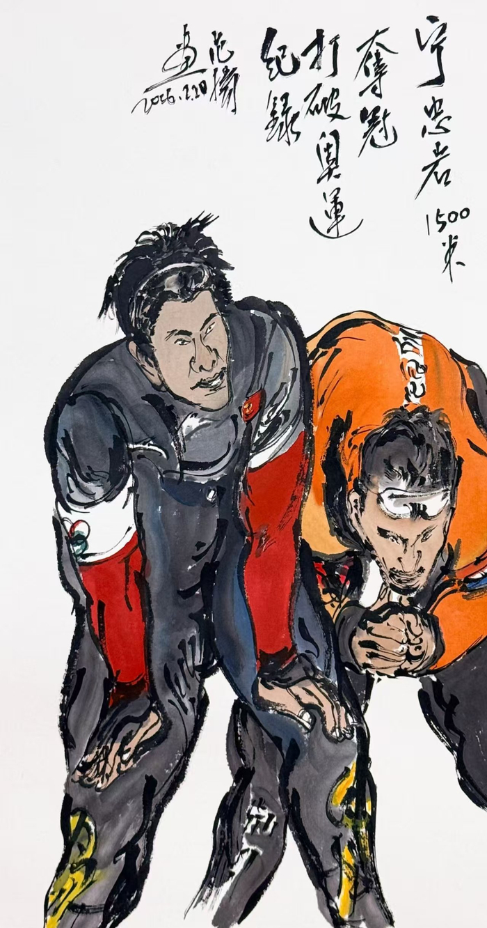 著名书画家范扬先生闻风而动,立即将央视直播画面的精彩瞬间写于笔端。宁忠岩冲刺刹那、喜极而泣等时刻被艺术而传神地一一呈现。