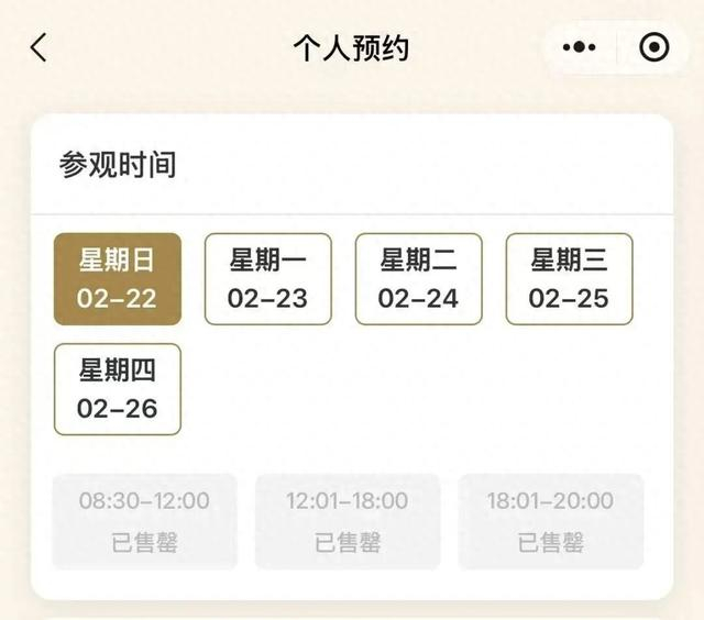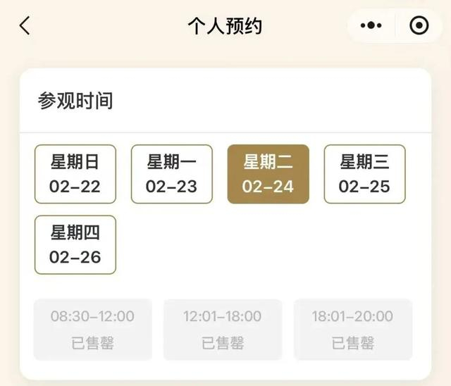 小布从三星堆博物馆公众号“门票预约”中看到,截至发稿时,三星堆博物馆2月22日、2月23日、2月24日门票均已售罄。