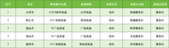 ●G4W广澳高速城区段至翠亨段南行 :由于沿线道路三车道逐步收窄为两车道,假期间沿途车流量增多,导致该路段易现拥堵,诱发剐蹭事故。