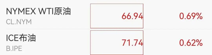 布油、美油双双拉升超0.6%。