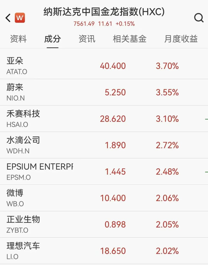 中概股多数上涨,亚朵、蔚来、禾赛科技涨超3%,理想、微博涨超2%。