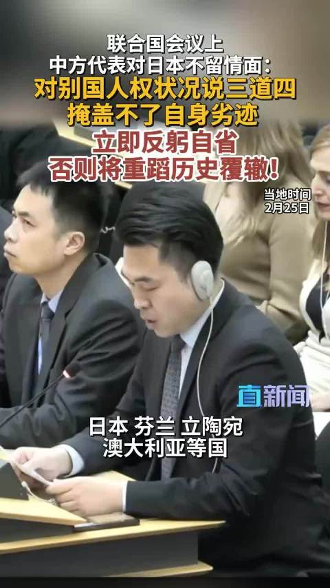 中国代表强调,日本对别国人权状况说三道四掩盖不了自身人权劣迹。日本在“慰安妇”等问题上拒不承担历史责任,无视联合国人权机制关切,通过报复施压制造寒蝉效应。日本曾发动侵略战争,犯下严重战争罪行,却从未深刻反省。中方敦促日本立即反躬自省,否则将重蹈历史覆辙。