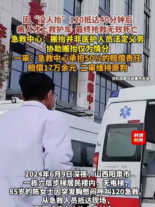此前据红星新闻报道,2024年6月9日深夜,山西阳泉市一栋六层步梯居民楼内,85岁的陈女士因突发胸憋呼叫120急救。从急救人员抵达现场,到最终将老人抬上救护车,中间整整过去了40分钟,而陈女士家距医院仅4分钟车程。这段本应争分夺秒的院前急救,因为“没人抬”陷入僵滞,后续老人经抢救无效离世。