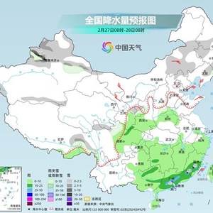 央视网消息:据中国天气网消息,今天(2月27日),南方降雨范围缩减,降雨重心南移至华南,部分地区有大雨。明后天,我国新一轮大范围降水过程将接踵而至,江南、华南等地阴雨频繁,需防范连续降雨对交通出行等方面的不利影响。受频繁雨雪和冷空气影响,未来几天,北方气温多波动起伏,华北、东北部分地区气温偏低,需注意保暖。
