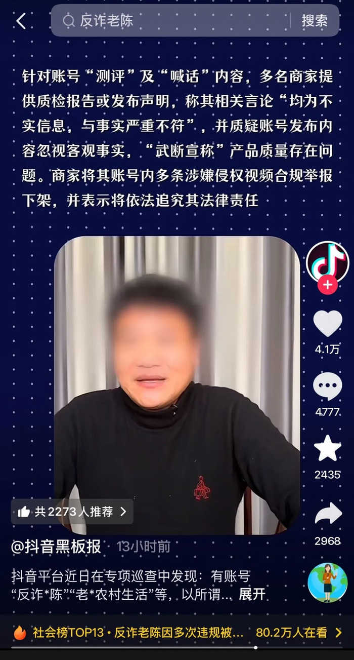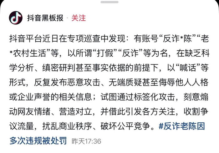 抖音出手!“反诈老陈”账号被罚