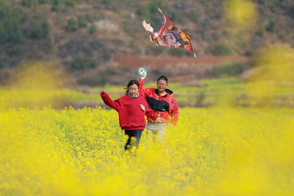 二月春风拂过,云南省陆良县芳华镇复兴村已是满目金黄、油菜飘香,处处春意盎然。孩子们在花海间追逐嬉闹,沐着暖阳、伴着花香,尽享春日里的烂漫时光。(云南省陆良县纪委监委供  王勇 摄)