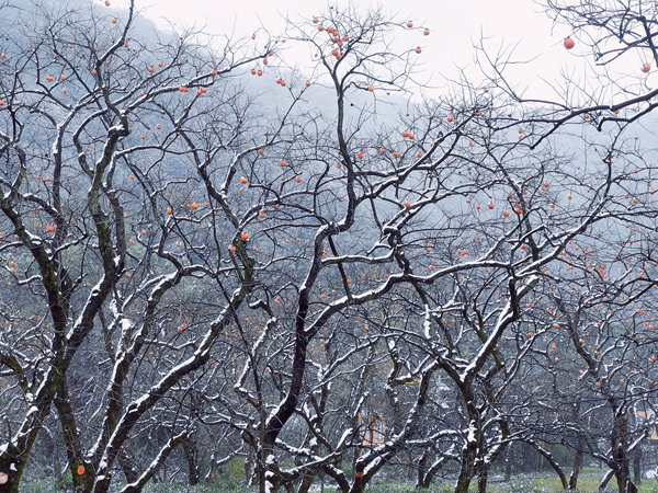 瑞雪压枝,红柿报喜。在浙江省杭州市萧山区临浦镇横一村的柿子园,雪后的柿子树宛如挂满了喜庆的小灯笼。(浙江省杭州市萧山区纪委监委供 孔霄燕 摄)