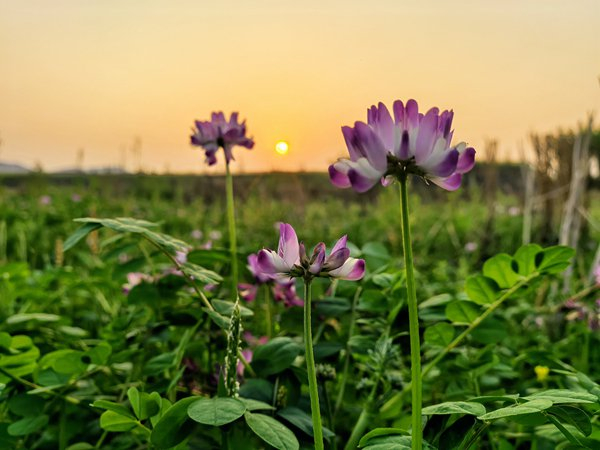 春风拂野,晚霞铺锦。广西壮族自治区柳城县东泉镇紫云英花田如紫绸漫野,霞光轻染,花影叠翠,风携花香漫过黄昏,天地间尽是温柔绚烂的诗意。(广西壮族自治区柳城县纪委监委供  胡善文 摄 )