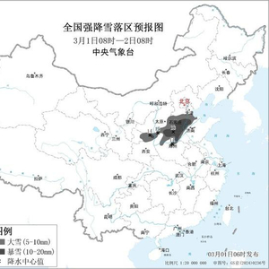 央视网消息:中央气象台3月1日06时继续发布暴雪蓝色预警,预计3月1日08时至3月2日08时,甘肃东部、陕西北部、山西中南部、河北中南部、河南北部、山东西北部等地部分地区有大雪,其中,陕西北部、山西南部、河北南部、山东西北部、河南北部等地部分地区有暴雪(10~18毫米),上述部分地区新增积雪深度3~8厘米,局地可达10~15厘米。