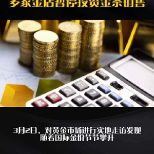财联社3月2日电,随着国际金价节节攀升,有品牌金店暂停销售投资金条,取而代之以工艺金条。工艺金条与投资金条相比,每克价格相差200元至300元。目前,工艺金条价格在1400元/克左右。首饰金方面,记者走访了解到,3月2日,主流品牌金店首饰金价格基本达到1620元/克。 (中证金牛座)
