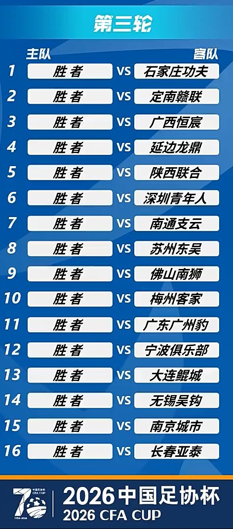 2026年足协杯抽签:广州豹若胜出将战国安,中超球队第4轮登场