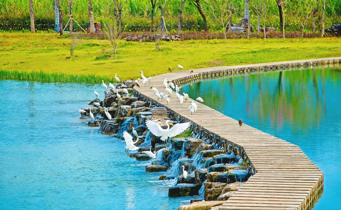 春雷惊百虫,鸟语唤新阳。在崇左市江州区麦那湖畔上,白露群栖水岸石阶,觅虫嬉戏,生机盎然,展现边关崇左春日生态之美。(崇左市纪委监委供 黎卫日/摄)