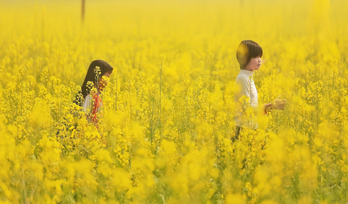 惊蛰时节,恭城瑶族自治县西岭镇的油菜花田被春风染成一片鎏金。孩童在花海中嬉戏,金黄的花浪与稚嫩的身影相映成趣,定格成一幅温暖治愈的田园画卷。(恭城瑶族自治县纪委监委供 侯土云/摄)