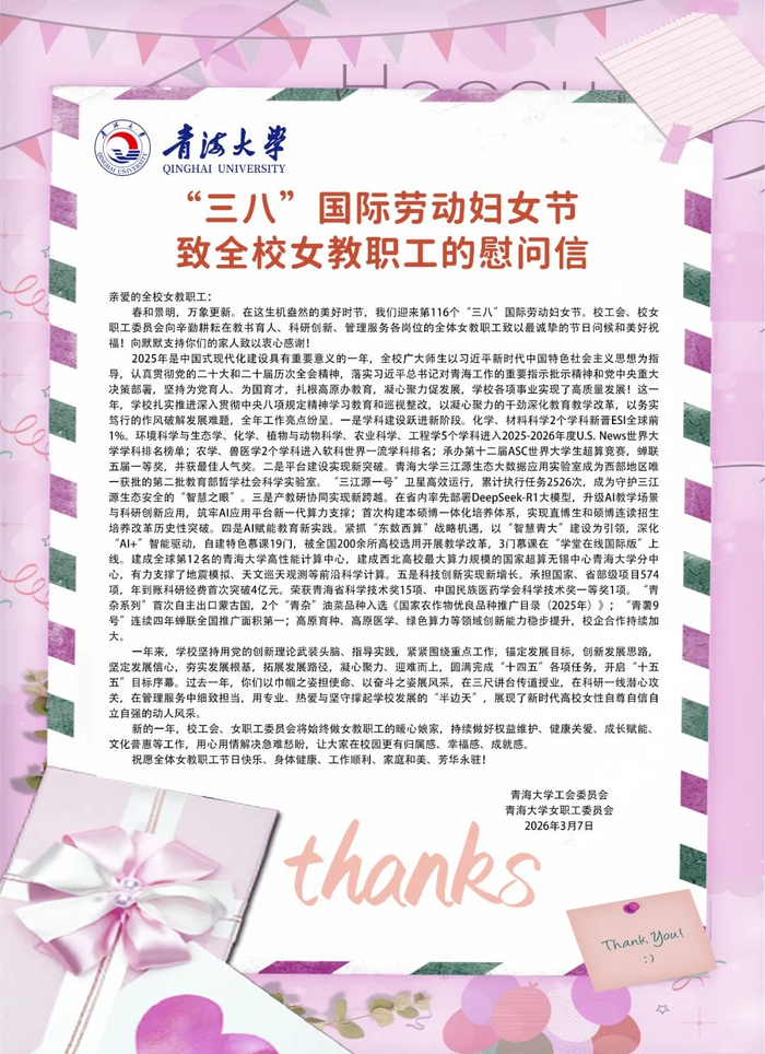 “三八”国际劳动妇女节 致全校女教职工的慰问信