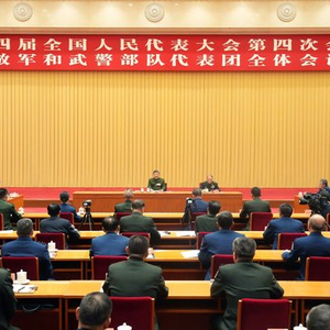 7日下午,中共中央总书记、国家主席、中央军委主席习近平出席十四届全国人大四次会议解放军和武警部队代表团全体会议。