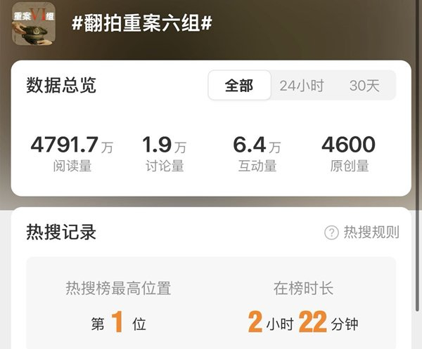 近日,高分国产刑侦剧《重案六组》毫无预兆地冲上了热搜第一。