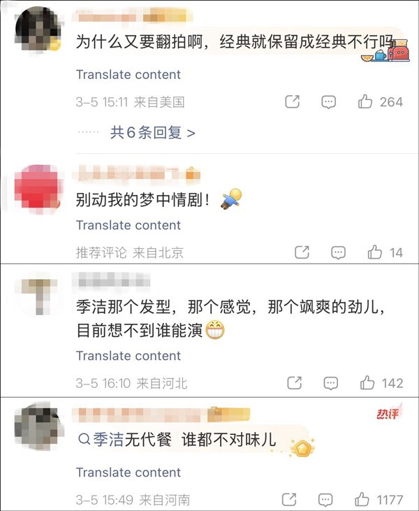 对于翻拍的消息,3月6日,原版编剧兼季洁扮演者王茜在微博晒出“我不知道”四连表情包做出回应。
