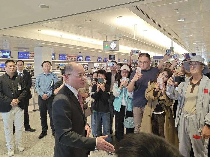 据微信公众号“中国驻阿联酋大使馆”消息,2026年3月7日,新任中国驻阿联酋大使曾继新抵阿后即赴迪拜国际机场为搭乘首班增开航班回国的同胞送行,驻迪拜总领事欧渤芊参加。