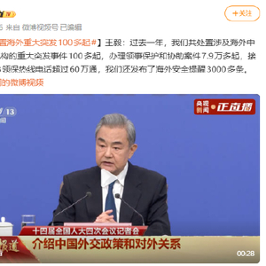 王毅:过去一年,中国处置海外重大突发事件100多起