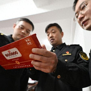 天津市市场监管综合行政执法总队工作人员在查看涉案的直播间产品。新华社记者赵子硕 摄