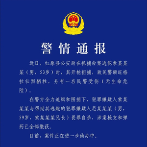 在警方全力追缉和围捕下,犯罪嫌疑人索某某某与帮助其逃跑的犯罪嫌疑人尼某某某(男,59岁,索某某某兄长)畏罪自杀,涉案枪支和弹药已全部缴获。目前,案件正在进一步侦办中。