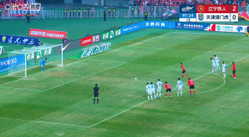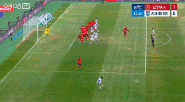 第31分钟,津门虎前场左侧定位球开到禁区造成乱战,门前王献均近距离打门被门将扑出,第二点谢蒂内转身再打被封堵出底线↓