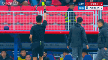 第83分钟,津门虎教练组吃到一张黄牌↓