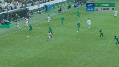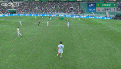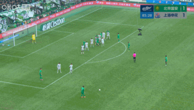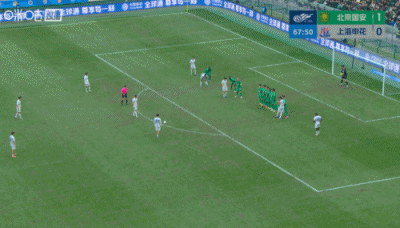 第67分钟,陈晋一任意球直接打进球门死角扳平比分,上海申花1-1北京国安。↓