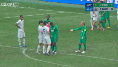 第49分钟,双方球员在争抢位置时有些小摩擦,马宁对两队都进行口头警告。↓