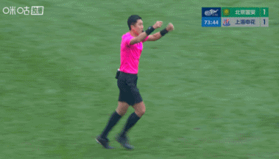 第19分钟,申花前场抢断,米内罗趟球杀入禁区趟大,随后在禁区里对抗倒地,马宁没有表示。↓
