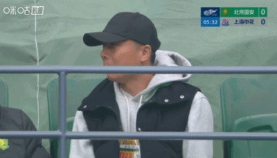 第5分钟,镜头给到受伤缺阵坐在看台观战的李磊。↓