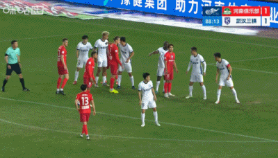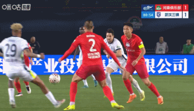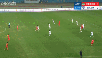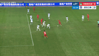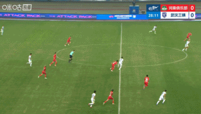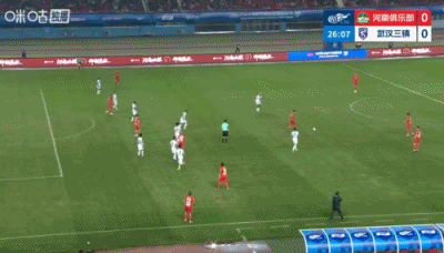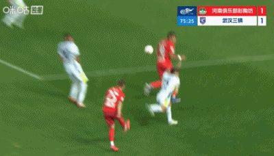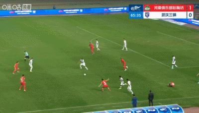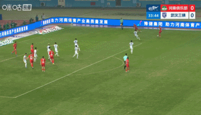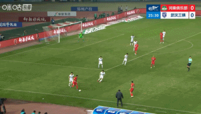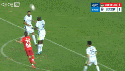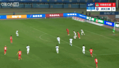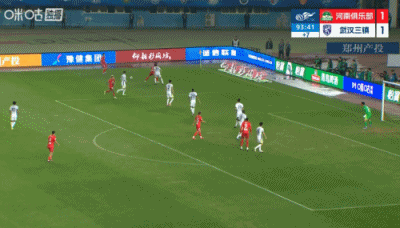 第90+6分钟,三镇后场解围失误,河南左路传中,门前叶力江抢点头球攻门稍稍高出↓