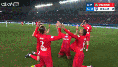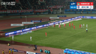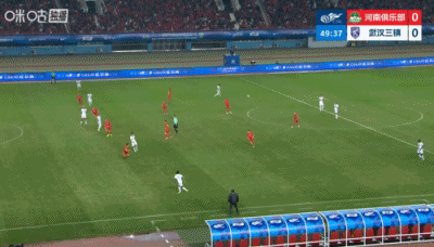 第54分钟,河南中路组织进攻,纳萨里奥斜长传给到右路钟义浩,钟义浩调整内切后送出传中,门前古斯塔沃大力头球攻门,方镜淇扑到但没能阻止进球,河南1-0领先↓