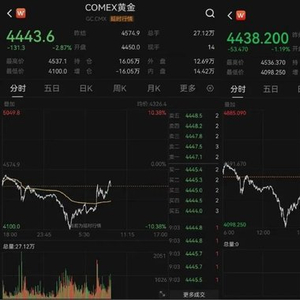截至发稿时,国际金价盘中出现上扬,COMEX黄金和伦敦现货黄金价格跌幅均大幅收窄,重上4400美元上方。