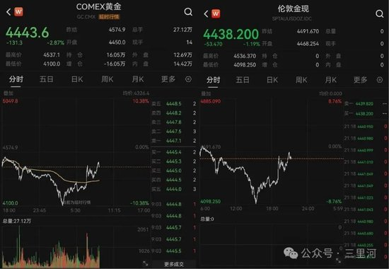 COMEX黄金一度跌幅超10%,伦敦现货黄金一度跌超8.7%。