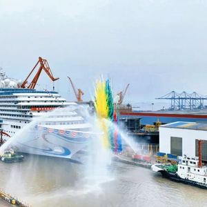 3月20日,第二艘国产大型邮轮“爱达·花城号(Adora Flora City)”在中船集团旗下上海外高桥造船有限公司顺利出坞,后续将加速推进内装和系统调试等各项工作,计划于2026年底前完成交付,并在广州南沙国际邮轮母港开启国际航线。