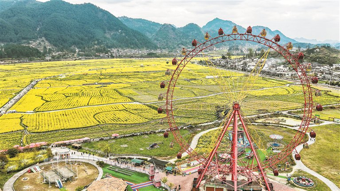 近年来,贵州省贵定县扎实推进共同富裕,大力推动美丽乡村建设,打造特色旅游村寨,形成以“赏花经济”为亮点的农旅结合产业,带动乡村旅游,推进乡村全面振兴。近日,该县盘江镇“金海雪山”景区的油菜花迎来盛花期,吸引众多游客前来观光游玩。图为盘江镇“金海雪山”景区一隅。 新华社记者 陶亮 摄