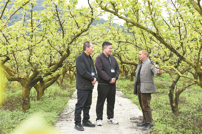 福建省清流县纪委监委立足职责定位,紧盯种植补贴发放、农资供应保障等关键环节,组织纪检监察干部深入田间地头开展一线监督,为扎实推进共同富裕提供坚强保障。图为近日,该县纪检监察干部在辖区蜜雪梨种植基地向种植户了解有关情况。詹淑婷 摄