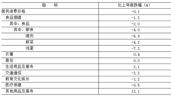 全年居民消费价格比上年下降0.1%。工业生产者出厂价格下降1.7%,工业生产者购进价格下降1.8%。农产品生产者价格下降1.9%。12月份,新建商品住宅销售价格环比指数为99.6、同比指数为97.6;二手住宅销售价格环比指数为98.7、同比指数为91.5。