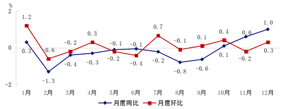 图2 2025年居民消费价格月度涨跌幅度