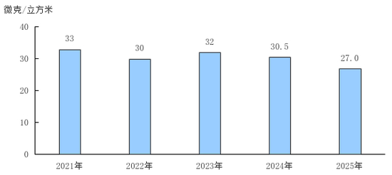 图9 2021—2025年细颗粒物(PM2.5)年均浓度