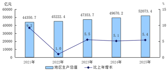 图1 2021—2025年地区生产总值及增长速度