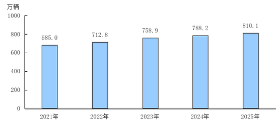 图4 2021—2025年末机动车保有量