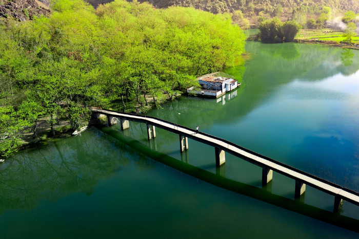 阳春三月的桂北大地上,融安县万物并秀。油菜花海金黄遍野,柳绿桃红相映成趣,春雾缭绕山城如梦。图为在柳州市融安县长安镇太平村春日景色。(融安县纪委监委供 覃智开/摄)