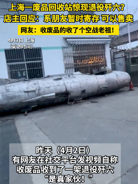 上海一废品回收站惊现退役歼六?店主:系朋友暂时寄存,可以售卖!网友:“收了个空战老祖!”