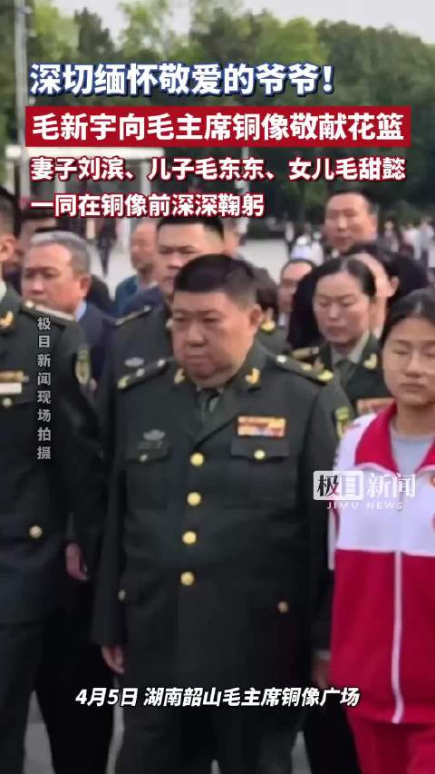 深切缅怀敬爱的爷爷!毛新宇向毛主席铜像敬献花篮,妻子刘滨、儿子毛东东、女儿毛甜懿一同在铜像前深深鞠躬