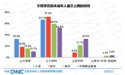 《报告》显示,互联网对于低龄群体的渗透能力持续增强,32.9%的小学生网民在学龄前就开始使用互联网。这一趋势对家庭的上网技能教育、网络内容监督管理、互联网企业针对性保护机制提出更高要求。