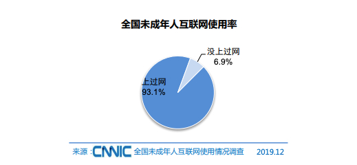 2020年5月13日,共青团中央维护青少年权益部、中国互联网络信息中心(CNNIC)联合发布《2019 年全国未成年人互联网使用情况研究报告》(以下简称《报告》) 。 《报告》基于对全国31个省(区、市)的小学、初中、高中及中等职业学校34661名学生的抽样调查,从未成年人互联网接入环境、互联网使用、网络素养教育、网络安全与防护等方面,展示了当前我国未成年人的互联网使用特点和网上生活状态。